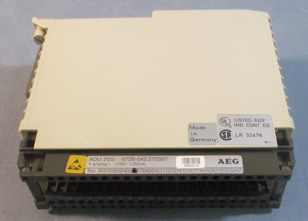 Input Module For sale is an AEG ADU 205 6728-042.2703397 Rev 06 4 Analog Input Module 10V 20mA. Item appears used and in great condition. Will come as shown and with what is pictured. May show minor imperfections from shelf wear but...