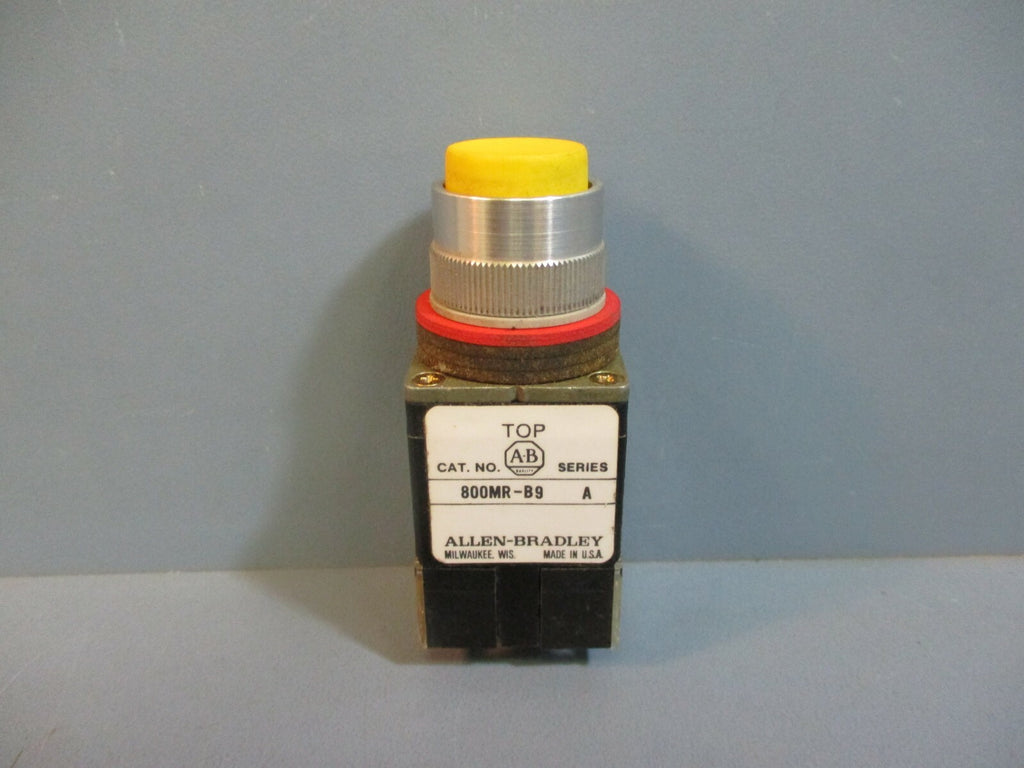 Allen-Bradley 800MR-B9 For sale is a Allen-Bradley 800MR-B9 Ser. A Yellow Push Button. The unit may show slight signs of cosmetic wear from the previous owner such as scratching, discoloration, shelf wear, paint chipping and/or other markings that should not impact...