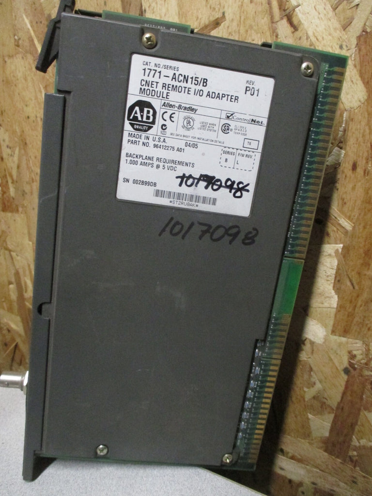 Adapter Module For sale is a Allen Bradley Controlnet Remote I/o Adapter Module Ser B 1771-ACN15. The unit appears to be in used condition by the previous owner. The unit may show slight signs of cosmetic wear from the previous owner such...