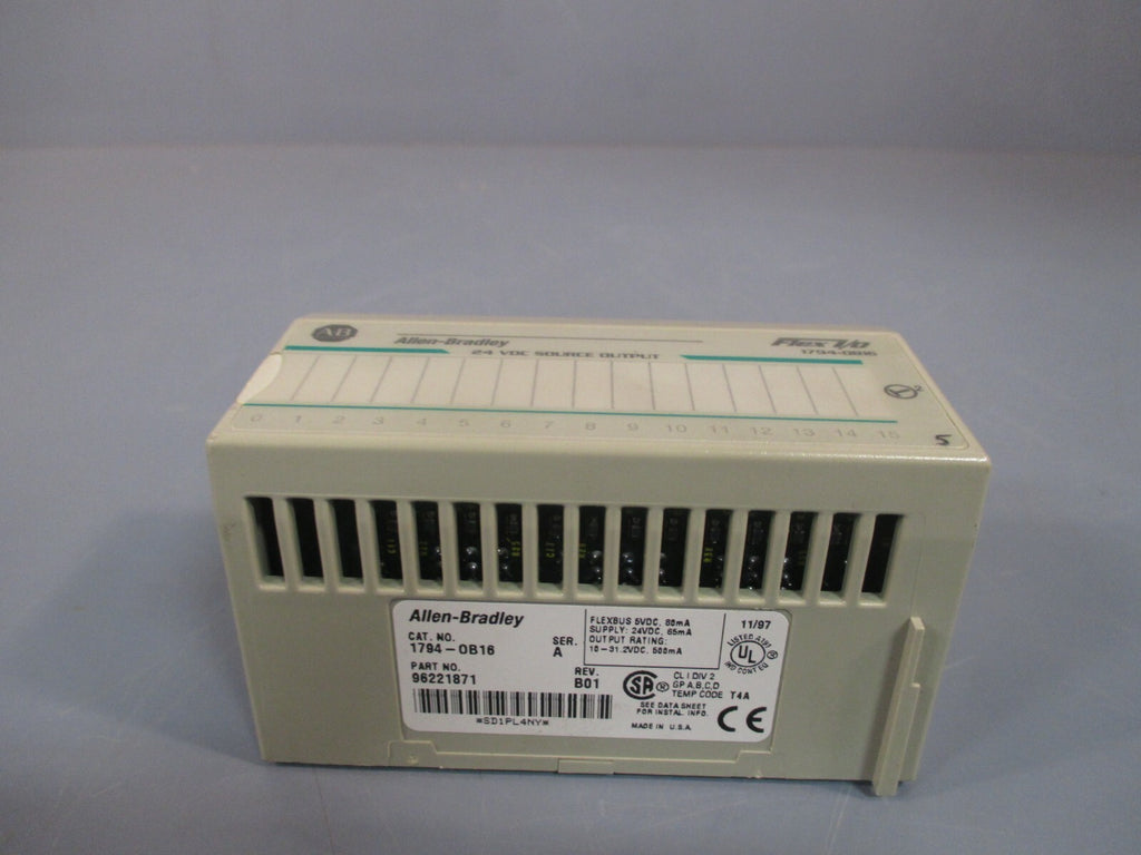 Module For sale is a Allen-Bradley Flex I/O Output Module 24 VDC Ser. A 1794-0B16. The unit appears to be new and unused by the previous owner. The unit may show slight signs of cosmetic wear from the previous owner such as...