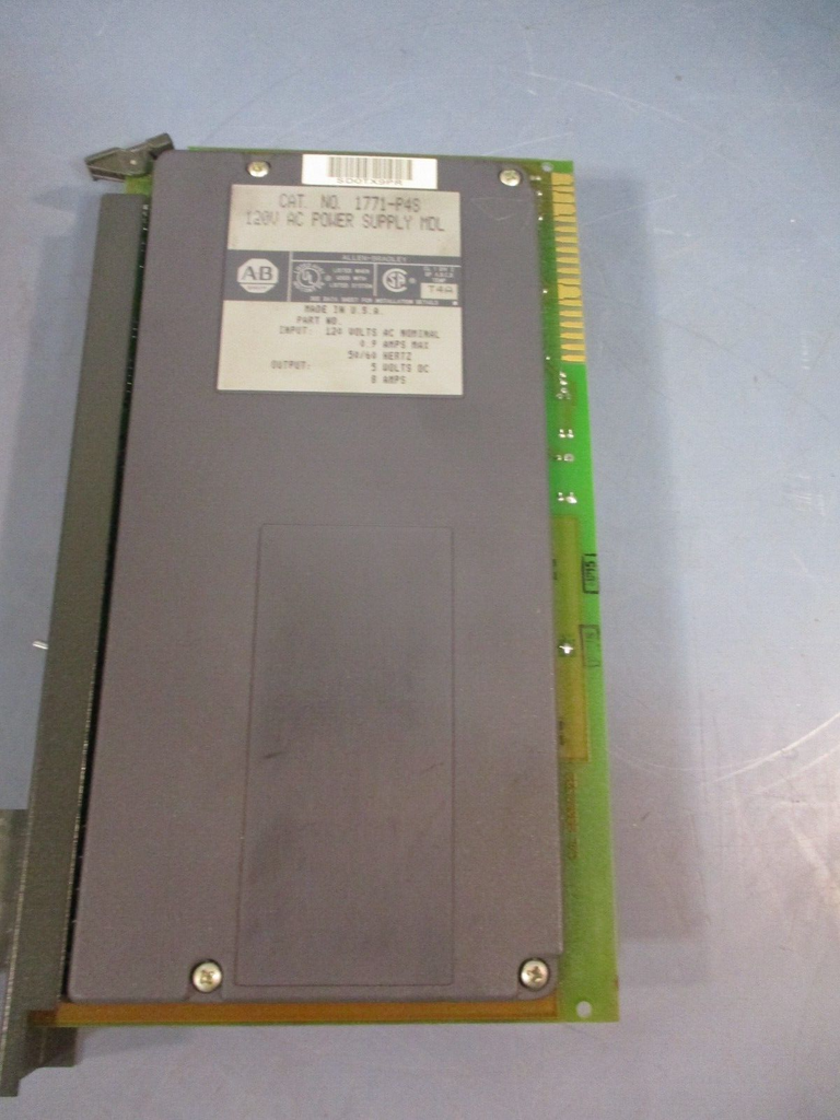 Power Supply For sale is a Allen-Bradley PLC-5 Power Supply 1-Slot, 8A, 120V AC 1771-P4S. The unit appears to be in used condition. The unit may show slight signs of cosmetic wear from the previous owner such as scratching, discoloration, shelf wear, paint chipping...