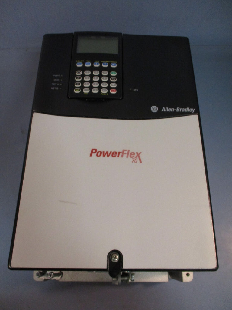 For sale is a Allen Bradley PowerFlex 70 AC Drive, 3 Phase, 15HP, 11 kW SER A 20AD022A0AYNANC0. The unit appears to be in used condition.  The unit may show slight signs of cosmetic wear from the previous owner such as scratching, discoloration, shelf wear, paint chipping and/or other markings that should not impact the unit's performance. The unit includes everything shown in photos.