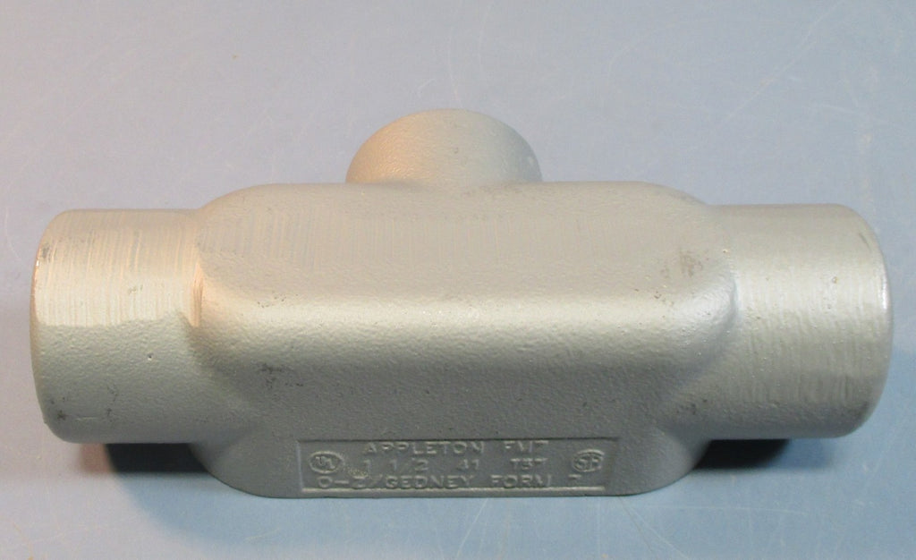 Conduit Body For sale is an Appleton T57, T Style Ported 1-1/2" Conduit Body FM7. The conduit is new but no longer in the original box. Some light signs of shelf wear may show from the previous owner but nothing that will impact the performance of the product. Overall the conduit remains in very good, ready to use condition.