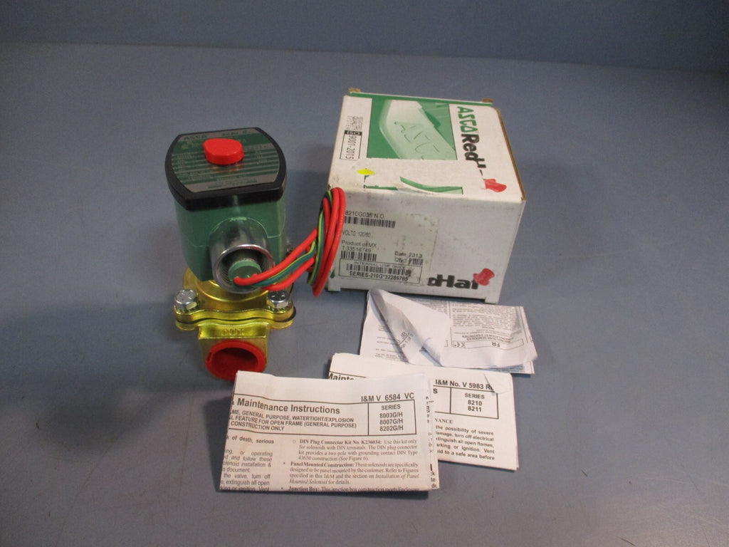 Valve For sale is a ASCO SOLENOID VALVE, 120/60V 150PSI 3/4"-PIPE RED-HAT 8210G035. The unit appears to be new and unused by the previous owner. The unit may show slight signs of cosmetic wear from the previous owner such as scratching, discoloration,...