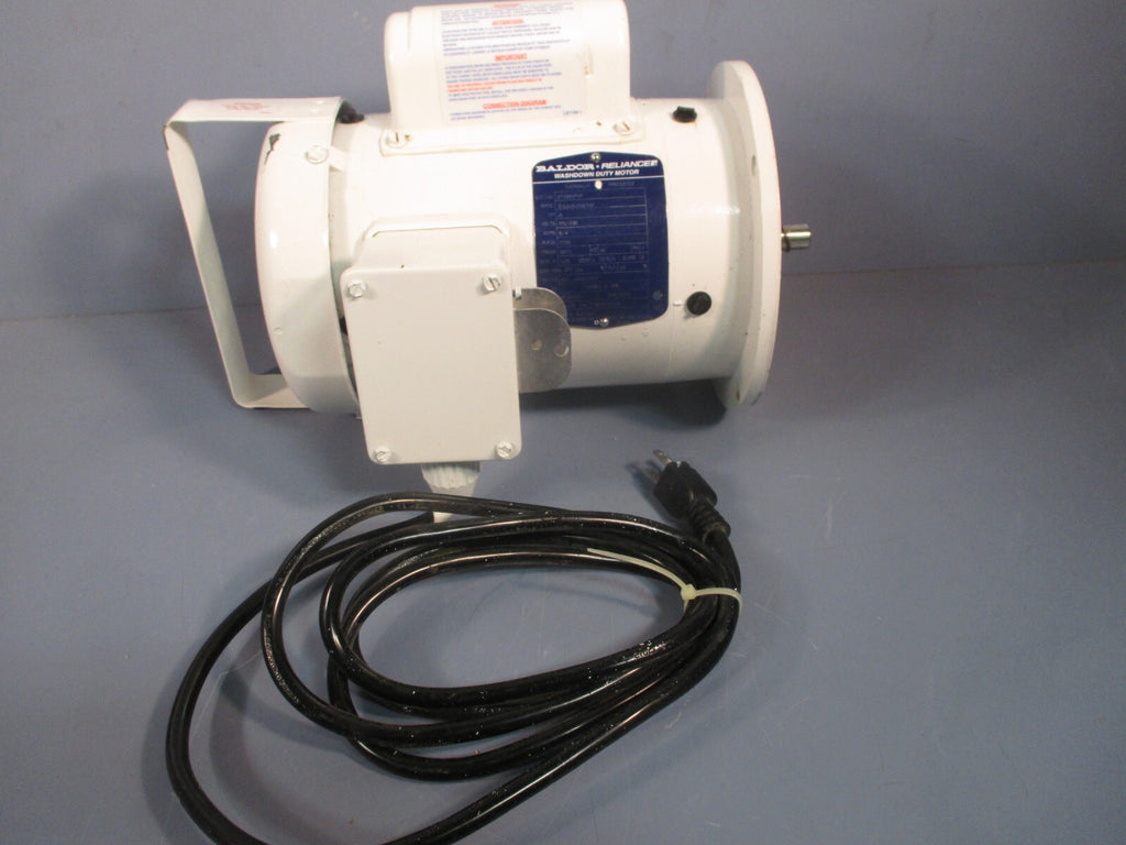 For sale is a BALDORE RELIANCE WASHDOWN DUTY MOTOR TEFC, 1/2 HP, 115/230V, 272889PSP. The unit may show slight signs of cosmetic wear from the previous owner such as scratching, discoloration, shelf wear, paint chipping and/or other markings that should not impact the unit's performance. Overall the unit appears to be in excellent, new, ready to use condition. The unit includes everything shown in photos.