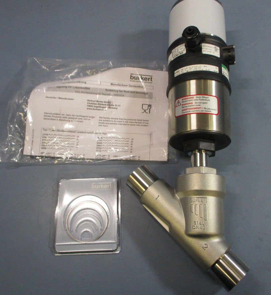 Burkert 2100 Angled Pneumatic Actuated Valve w/ 8691 Single Act Pilot 24V 8801