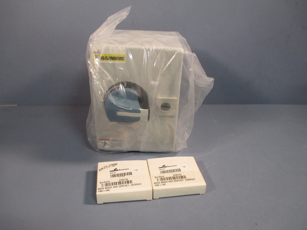 For sale is a COOPER-BUSSMAN SAFETY DISCONNECT SWITCH ENCLOSURE 3 POLE 40 AMP ENF322-3