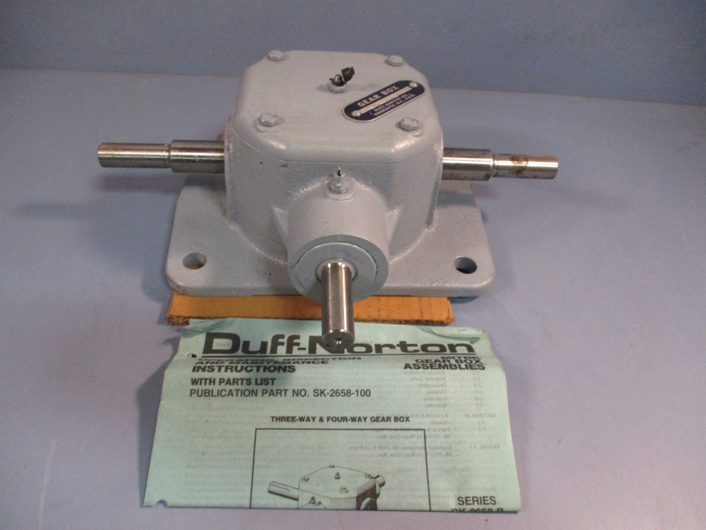 Gearbox For sale is a Duff Norton SK2658-1 Three-Way Gearbox SK2658M2L. The unit appears to be new and unused by the previous owner. The unit may show slight signs of cosmetic wear from the previous owner such as scratching, discoloration, shelf wear,...