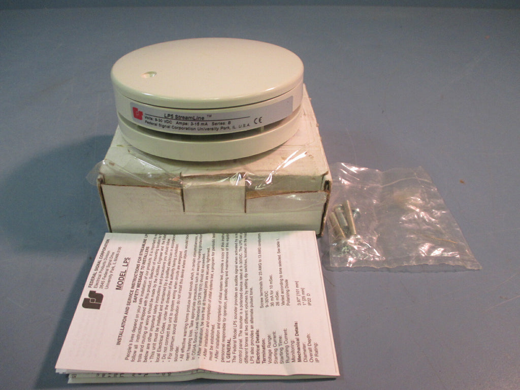 For sale is a FEDERAL SIGNAL LP5 STREAMLINE LOW PROFILE MICRO SOUNDER LP5-09-030. The unit appears to be new and unused by the previous owner. The unit may show slight signs of cosmetic wear from the previous owner such as scratching, discoloration, shelf wear, paint chipping and/or other markings that should not impact the unit's performance. Overall the unit appears to be in excellent, new, ready to use condition. The unit includes everything shown in photos.