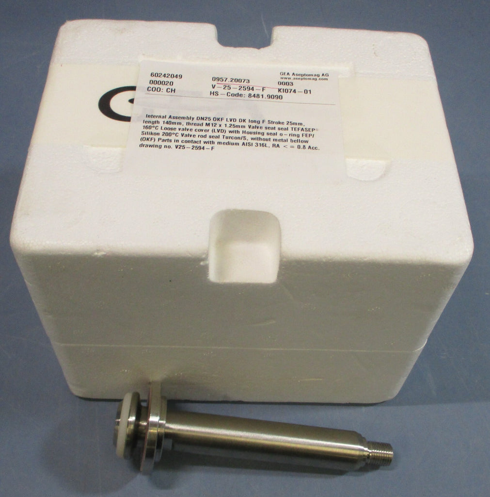 Bellows Valve For sale is a GEA Aseptomag AG 0957.20073 Bellows Valve V-25-2594-F 144mm Long, 25mm Stroke. Item appears new and in excellent condition. Will come as shown and with what is pictured. May show minor imperfections from shelf wear but...