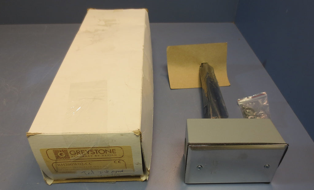 Transducer For sale is one Greystone humidity transducer, model RH200W02-CC. Item is new in its original package, but the box shows signs of shelfwear, including some tearing.Duct 2%WP EnclosureConformal Coat Shipping: Charged according to location. Sales tax of 8% will...