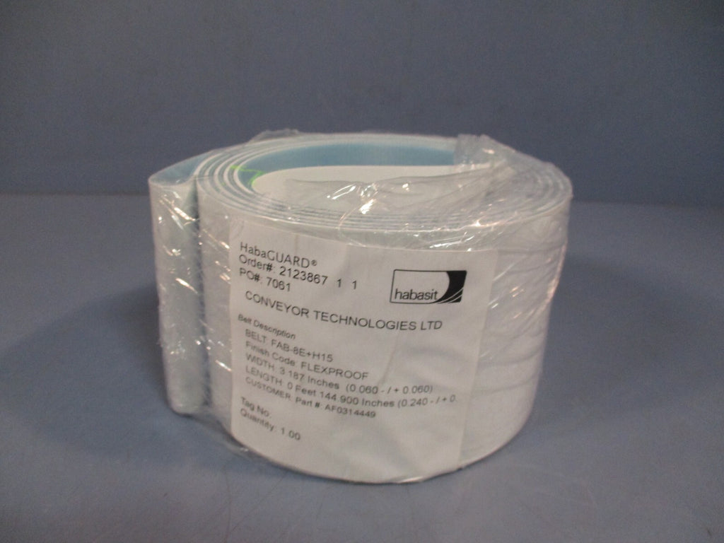 Belt For sale is a HabaGUARD Conveyor Belt FAB-8E+H15. The unit appears to be new and unused by the previous owner. The unit may show slight signs of cosmetic wear from the previous owner such as scratching, discoloration, shelf wear, paint chipping...