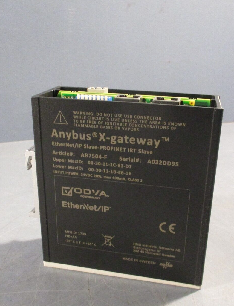 For sale is a HMS Anybus X-gateway – EtherNet/IP Adapter - PROFINET-IRT Slave AB7504-F. The unit appears to be new and unused by the previous owner. The unit may show slight signs of cosmetic wear from the previous owner such as scratching, discoloration, shelf wear, paint chipping and/or other markings that should not impact the unit's performance. Overall the unit appears to be in excellent, new, ready to use condition. The unit includes everything shown in photos.
