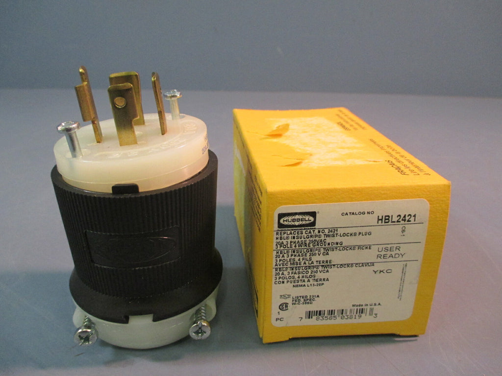 HUBBELL 3 POLE INSULGRIP TWIST-LOCK PLUG 20A HBL2421