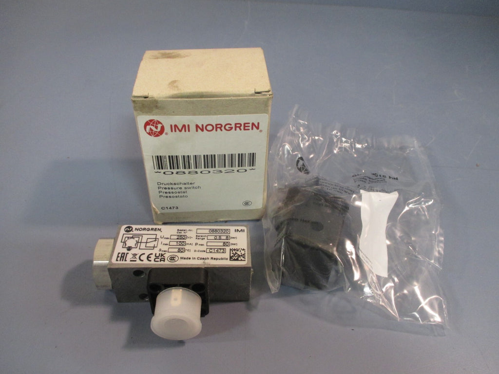Switch For sale is a IMI NORGREN Pressure Switch 0880320. The unit appears to be new and unused by the previous owner. The unit may show slight signs of cosmetic wear from the previous owner such as scratching, discoloration, shelf wear, paint chipping...
