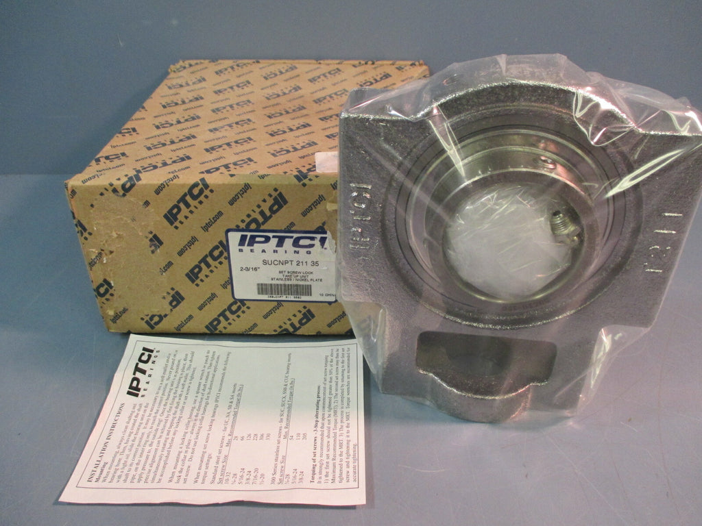 For sale is a IPTCI Resistant Take Up Unit Nickel Plated 2-3/16" Set Screw Lock SUCNPT 211-35. The unit appears to be new and unused by the previous owner. The unit may show slight signs of cosmetic wear from the previous owner such as scratching, discoloration, shelf wear, paint chipping and/or other markings that should not impact the unit's performance. Overall the unit appears to be in excellent, new, ready to use condition. The unit includes everything shown in photos.