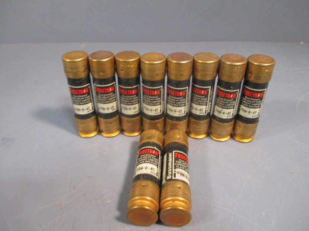 Fuse For sale is a LOT OF 10 BUSSMANN FUSETRON DUAL ELEMENT TIME DELAY FUSES 250V 45A FRN-R-45. The unit appears to be in used condition. The unit may show slight signs of cosmetic wear from the previous owner such...