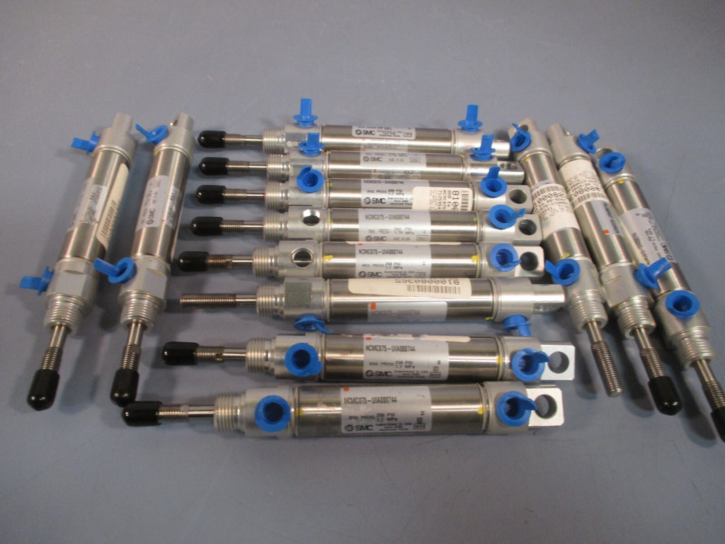For sale is a Lot of 13 SMC Double Actuating Air Cylinder NCMC075-UIA000744. The unit may show slight signs of cosmetic wear from the previous owner such as scratching, discoloration, shelf wear, paint chipping and/or other markings that should not impact the unit's performance. Overall the unit appears to be in very good ready to use condition. The unit includes everything shown in photos.