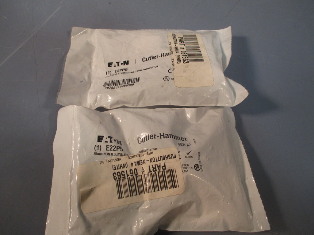 PUSHBUTTON For sale is a LOT OF 2 EATON CUTLER-HAMMER 25 MM NON ILLUMINATING FLUSH PUSHBUTTON E22P5. The unit may show slight signs of cosmetic wear from the previous owner such as scratching, discoloration, shelf wear, paint chipping and/or other markings that...