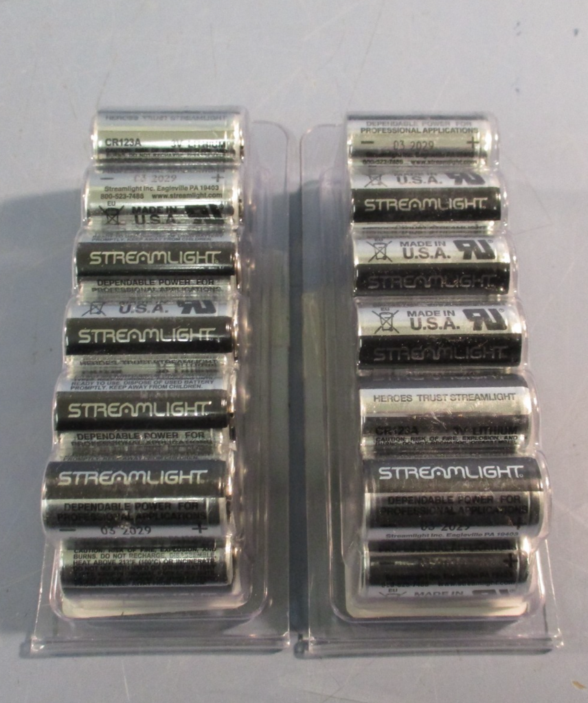 Batteries For sale is a Lot of (2) Streamlight CR123A Lithium Batteries 12 Pack 3V Lithium. The unit appears to be new and unused by the previous owner. The unit may show slight signs of cosmetic wear from the previous owner such...