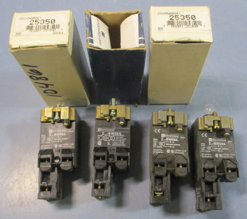 (Lot of 4) Telemecanique ZB2BW0941 Pilot Lamp 220-240V 60Hz ZB2-BE101 Cont. Blk
