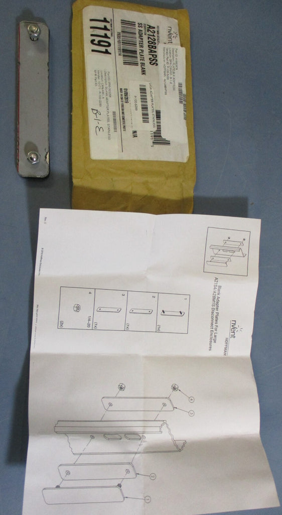 Blank Adapter Plate For sale is a Nvent Hoffman A2128BAPSS SS Blank Adapter Plate 11191 Stainless Steel. Item is used and in great condition. Will come as shown and with what is pictured. May show minor imperfections from shelf wear but nothing...