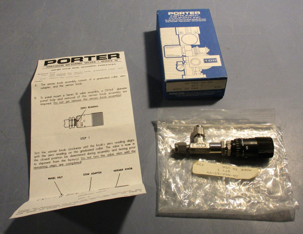 Meter Valve For sale is a Porter 2A-NSA-SS-VV Stainless Steel Precision Meter Valve Series 10 Item appears new and in excellent condition. Will come as shown and with what is pictured. May show minor imperfections but nothing that will impact performance....