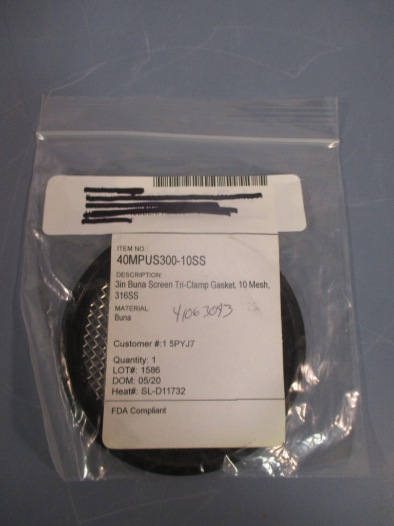For sale is a RubberFab 3in Screen Tri-Clamp Gasket,10 Mesh 316SS 40MPUS300-10SS. The unit appears to be new and unused by the previous owner. The unit may show slight signs of cosmetic wear from the previous owner such as scratching, discoloration, shelf wear, paint chipping and/or other markings that should not impact the unit's performance. Overall the unit appears to be in excellent, new, ready to use condition. The unit includes everything shown in photos.