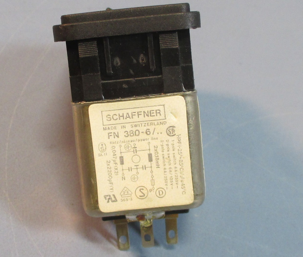 Power Entry Module For Sale is a Schaffner FN 380-6/.. Filtered Power Entry Module with Switch. The module is new old stock and may show signs of shelf wear, scratching, marking and/or discoloration from the previous owner. None of these slight imperfections that show will impact the performance of the product. Overall the module remains in very good, ready to use condition.