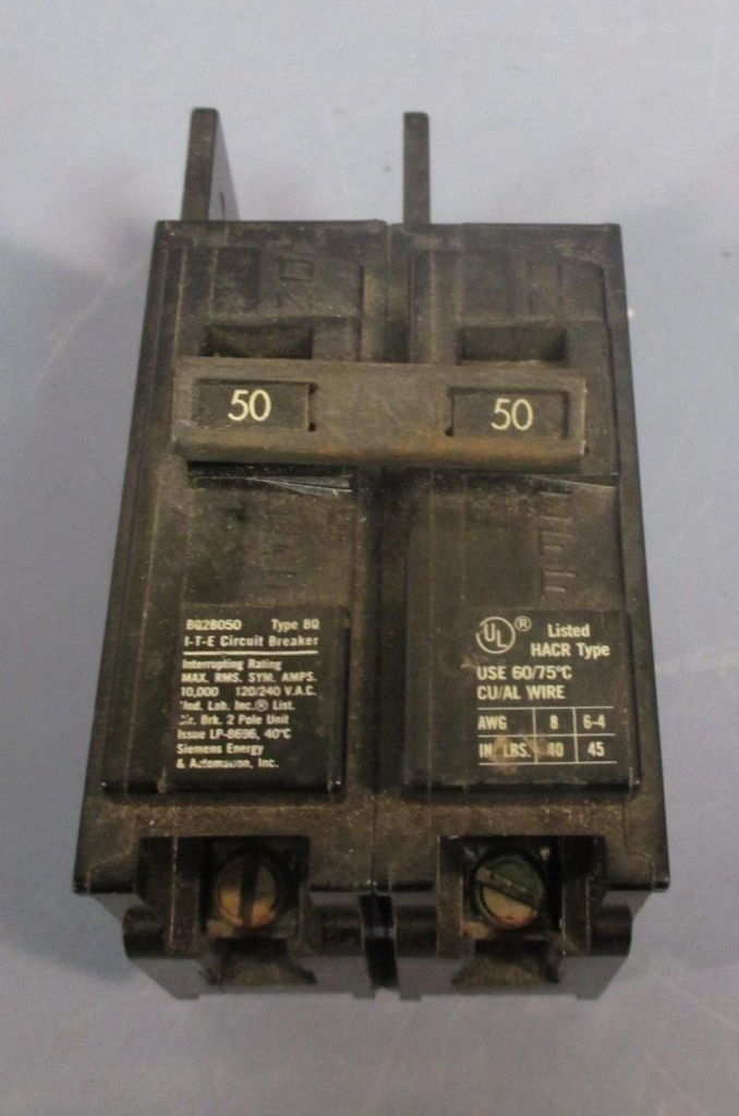 For sale is a Siemens 50A 2-Pole 120/240V BQ Bolt-On Circuit Breaker BQ2B050. The unit may show slight signs of cosmetic wear from the previous owner such as scratching, discoloration, shelf wear, paint chipping and/or other markings that should not impact the unit's performance. Overall the unit appears to be in used condition. The unit includes everything shown in photos.