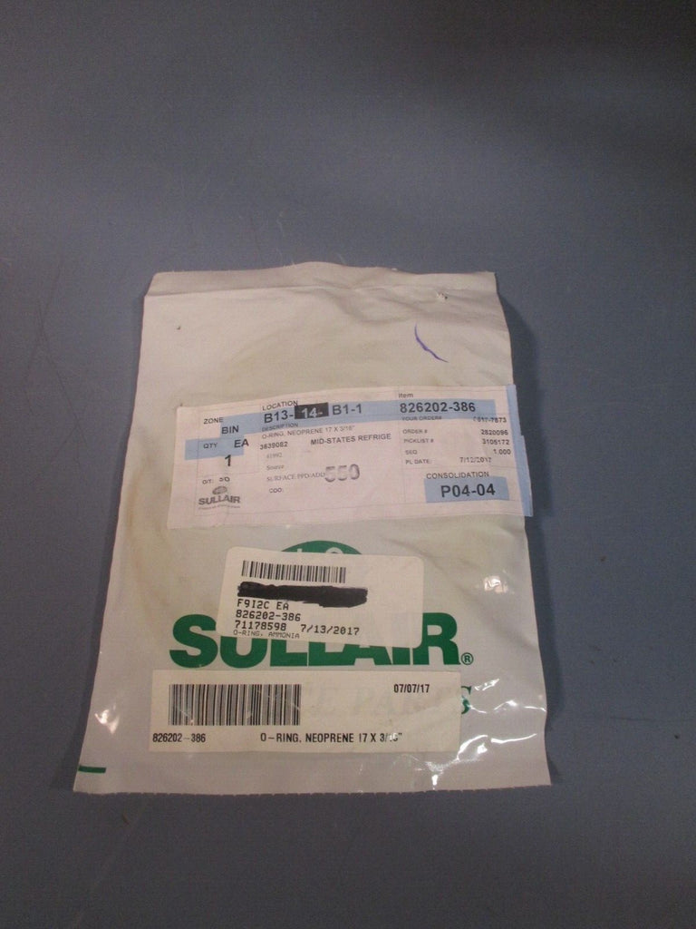 Sullair Air Compressors O-Ring, Neoprene 17 X 3/16" For 826202-386