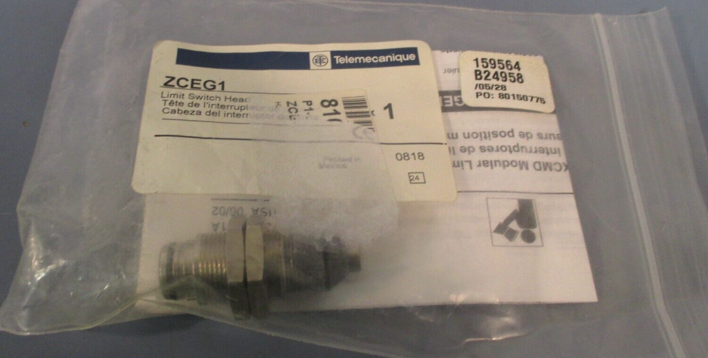 For sale is a Telemecanique Limit Switch Plunger Head ZCEG1. The unit appears to be new and unused by the previous owner. The unit may show slight signs of cosmetic wear from the previous owner such as scratching, discoloration, shelf wear, paint chipping and/or other markings that should not impact the unit's performance. Overall the unit appears to be in excellent, new, ready to use condition. The unit includes everything shown in photos.