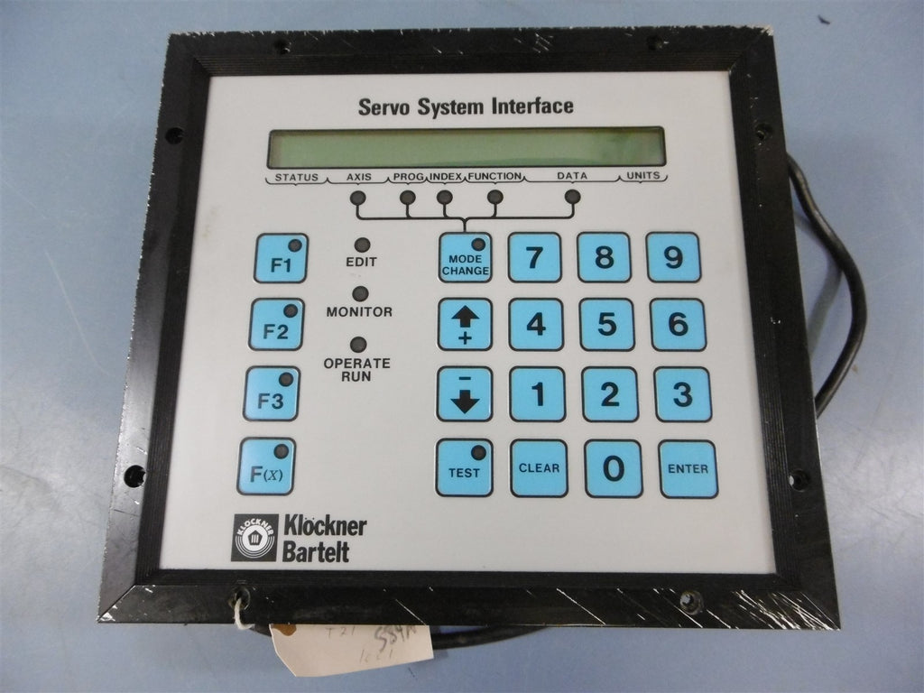 Interface PanelFor sale is a Emerson Klockner Bartelt, Servo System Interface, Panel 960093-06. This panel appears to have been previously used as it shows scratches, scuffs and paint chips. Overall the condition of this panel is fair as it does show signs of moderate...