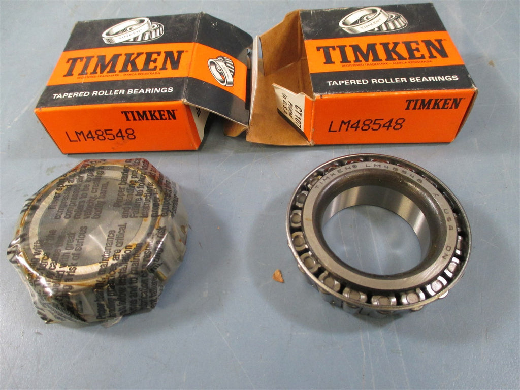 For Sale is a Timken LM48548 Tapered Roller Bearing Cone Lot of 2. This item is new and unused in the original factory packaging with no visual signs of wear or mounting. The overall condition of this item is excellent.