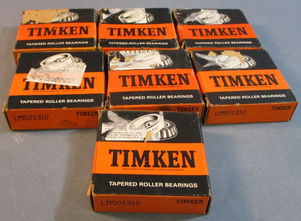 For sale is a Timken LM501310 Tapered Roller Bearing Cup 2.8910" OD, 0.58" W 2.4" Bore (Lot of 7).