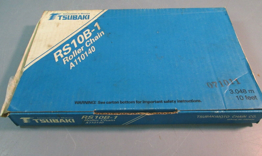 For sale is a TSUBAKI ROLLER CHAIN 10 FEET 3.048 M RS10B-1. The unit appears to be new and unused by the previous owner. The unit may show slight signs of cosmetic wear from the previous owner such as scratching, discoloration, shelf wear, paint chipping and/or other markings that should not impact the unit's performance. Overall the unit appears to be in excellent, new, ready to use condition. The unit includes everything shown in photos.