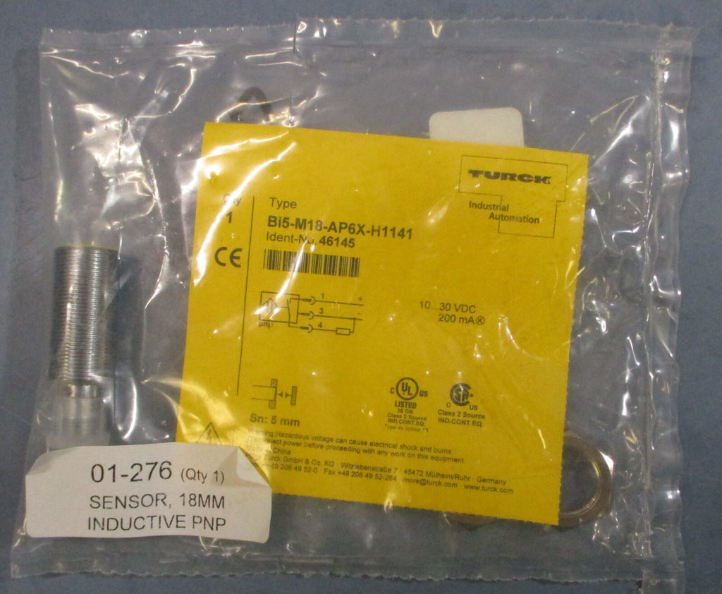 Proximity Sensor  For sale is a Turck Bi5-M18-AP6X-H1141 Proximity Sensor 10-30VDC 200mA Sn: 5mm ID No: 46145. Item appears new and in excellent condition. Will come as shown and with what is pictured. May show minor imperfections from shelf wear but...