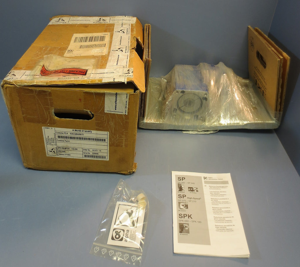 Gear Box For sale is one Wittenstein right angle gear box, model SPK-100-MF2-5-140. Item is new in its original package, but the box shows signs of shelfwear, as well as stickers from the previous owner.Ratio: 5 to 1Mounting Position B5...