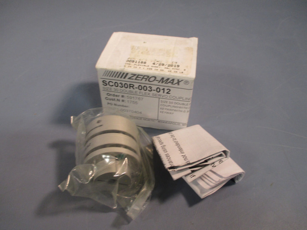 Coupling For sale is a ZERO-MAX Size 30 Double Flex Servo Coupling SC030R-003-012. The unit appears to be new and unused by the previous owner. The unit may show slight signs of cosmetic wear from the previous owner such as scratching, discoloration,...