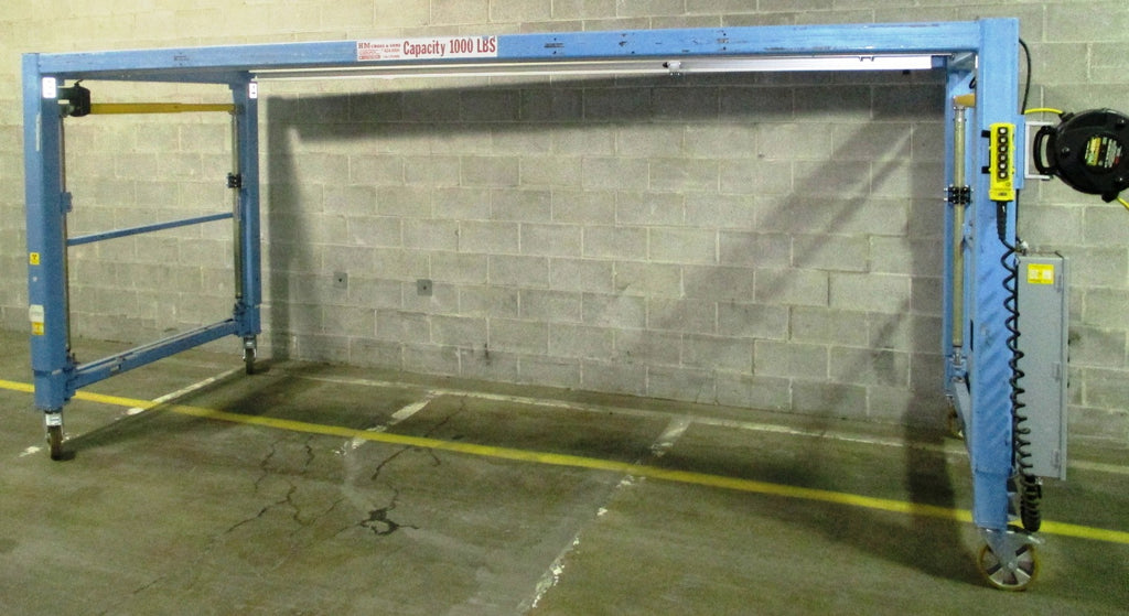 HM Cross Workstation Bridge Crane 1000 lb Capacity Telescoping, Tilt and MoveableUnit has dual telescoping controls so you can raise or lower each side independently.Working height is 6' 3" and raises to 8'9"Opening inside of crane is 13' 9" long...