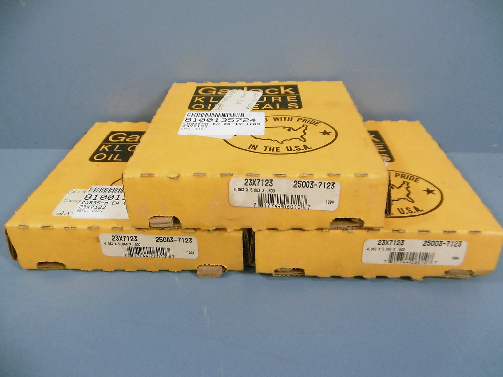 Oil Seal For sale is 3 Nib Garlock 25003-7123 23X7123 Oil Seal 4.063 X 5.063 X .500. This item is New in the original package, it may show signs of shelf wear or other cosmetic markings such as stickering, scratches...