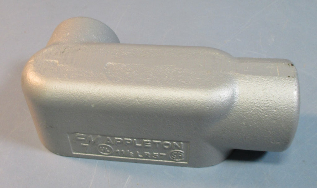 Conduit Body For sale is an Appleton LR57 Side L Ported 1-1/2" Conduit Body FM7. The item is new and no longer in the original package. Some light signs of shelf wear may show from the previous owner. None of these light signs of wear will impact the performance of the product. Overall the conduit remains in very good, ready to use condition.