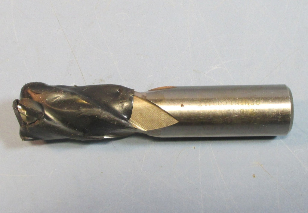End Mill For sale is a Brubaker 3/4" HH4 OG Lead 4.082 Gemini Cobalt Professionally CNC Resharpened End MIll.  The mill is used but has been resharpened and kept in protective wax.  The cutting edge that can be seen where the wax has been torn away appears in excellent condition.  Some light signs of wear, use and/or discoloration may appear from the previous owner.  Note that the cutting diameter may be slightly reduced from sharpening.