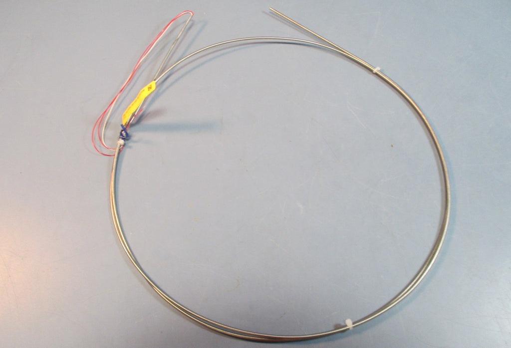 RTD Probe For sale is an E & M Automation R1T185L283-090-00-18-T3J0 12-2 RTD Probe with 7 feet of metal probe for -200 to 200°. The temperature is believed Fahrenheit but was not indicated on the label or by previous owner. The 7 foot metal probe is a close estimate based on how large one loop of material is multiplied by 2. It has a 3 wire connection. Overall this probe remains in very good, ready to use condition. No other specifications are known on this item as no spec sheet was provided and the model could not be found online.