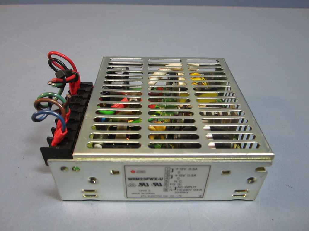 Power Supply For sale is ETA Electronic Power Supply, model WRM23FWX-U. Item is used, but in good condition. Unit shows signs of minor cosmetic wear, including scratches and scrapes, but nothing that will affect the unit's function.