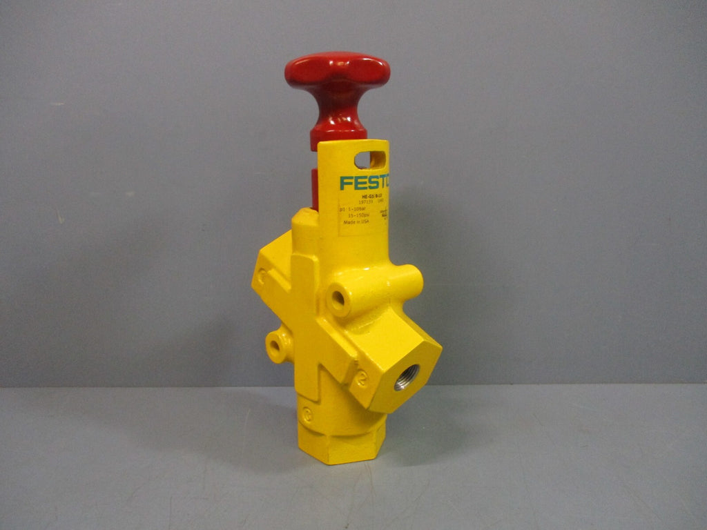 For sale is a Festo HE-G3/8LO Shut Off Valve 1-10bar 15-150psi. The unit appears to be new and unused by the