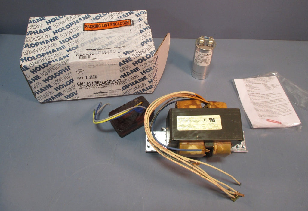 Ballast Replacement For sale is a Holophane RBK400PM48C Ballast Replacement 400 Watts PM 480 Volts. The ballast is new and still in the original package. The box may have been opened to inspect and photo the item. The box may also show signs of shelf wear, marking, stickering and/or discoloration from the previous owner. Overall the ballast remains in excellent condition.