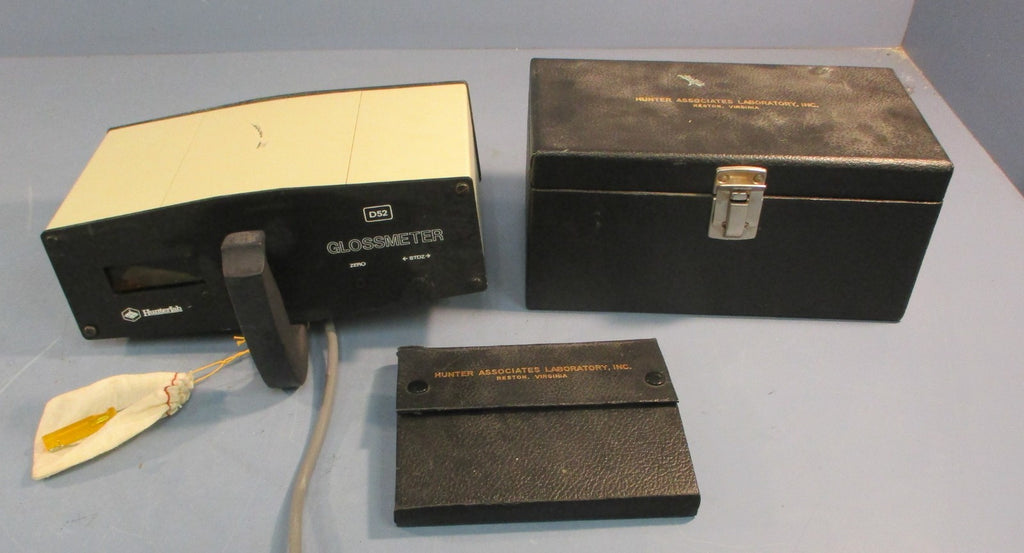 For sale is a Hunterlab D52 Glossmeter w/ DC-433 and D33G-3448 Gloss Standards and Cases. Item appears used and in good condition. Will come as shown and with what is pictured. May show minor imperfections but nothing that will impact performance.