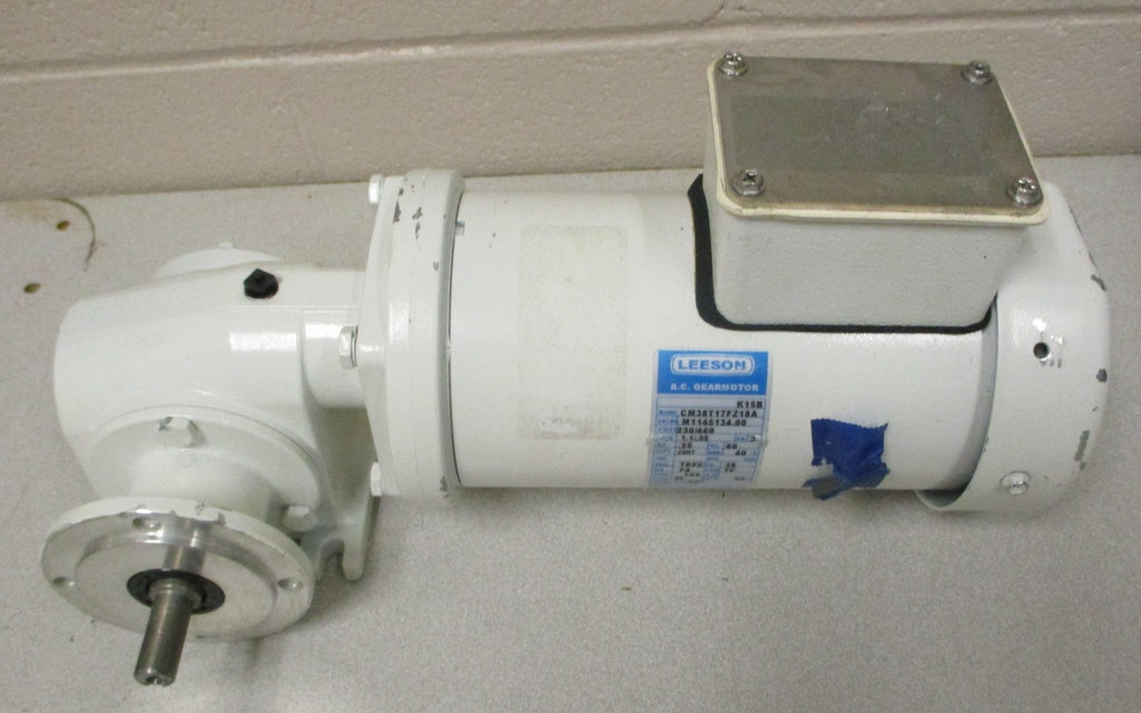 Leeson CM38T17FZ18A Gearmotor K15B 20:1 Ratio 86 RPM 0.25 HP 1/2" Shaft Dia