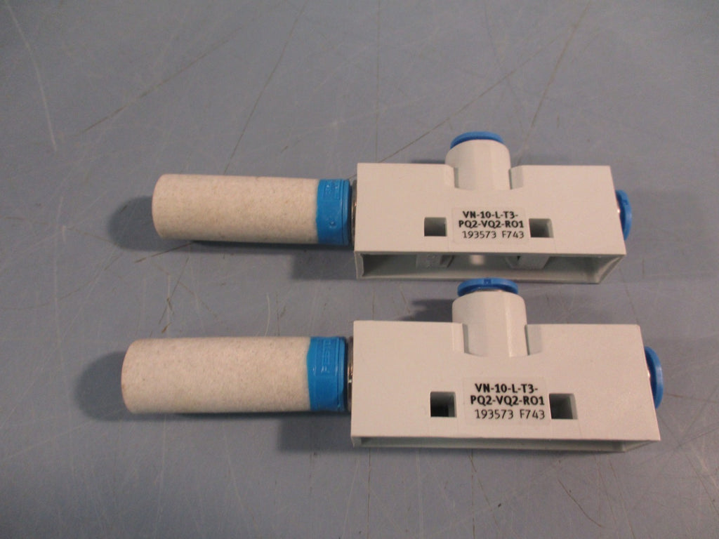 Lot of (2) FESTO 193573 VN-10-L-T3-PQ2-VQ2-RO1-A Vacuum Generator